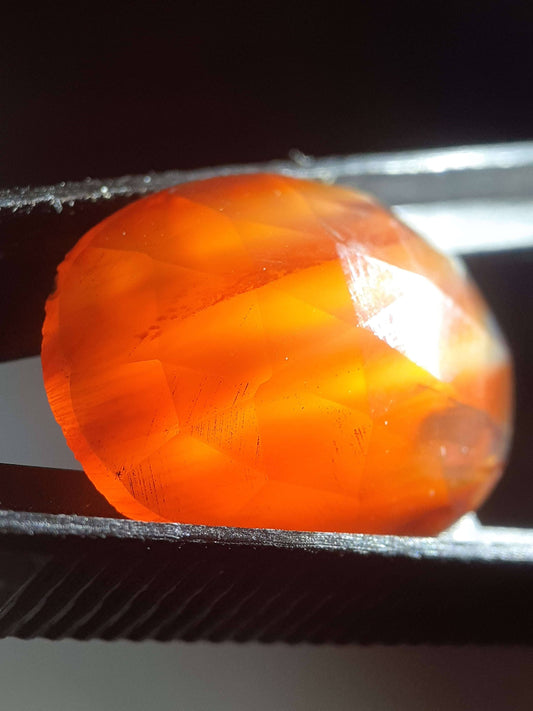 bicolor orange and red Carnelian,rose cut, oval, 12.70 ct