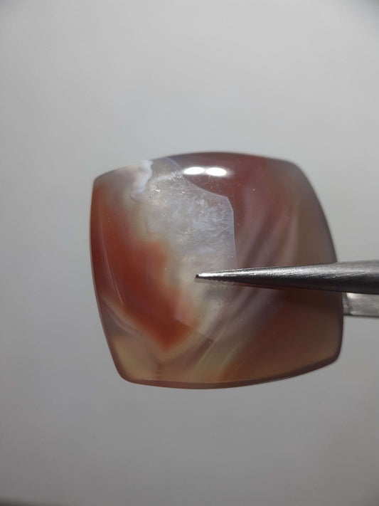 Natural brownish reddish grey and orangy red Botswana Agate - 15.40 ct - cushion - crystal structure centered