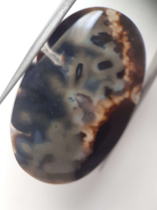 Natural grey black white brown Botswana Agate - 23.61 ct - oval Cabochon - unique - certified by NGB