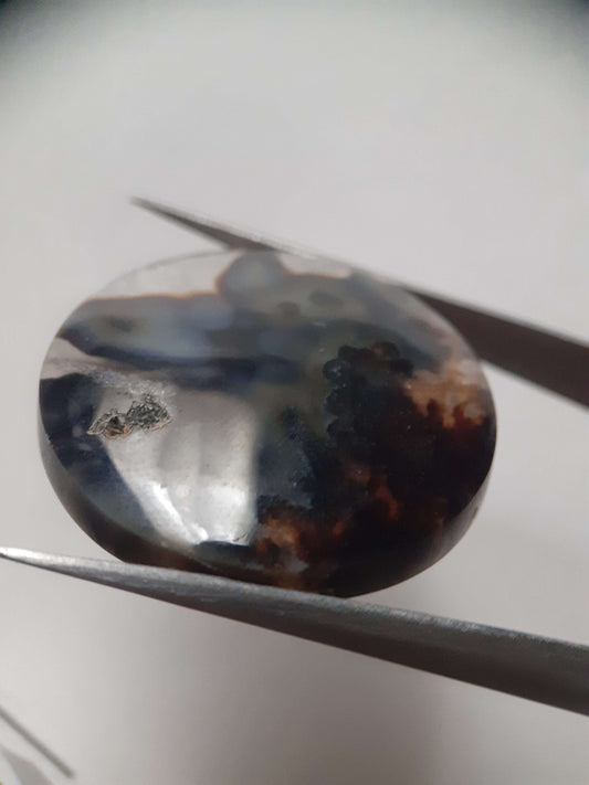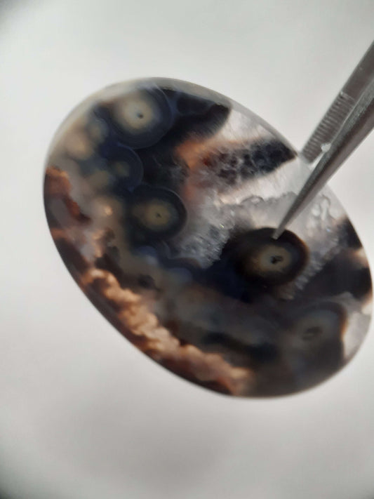 Natural blue and brown Agate - 38.948 ct - round - rare sumatra palm root agate
