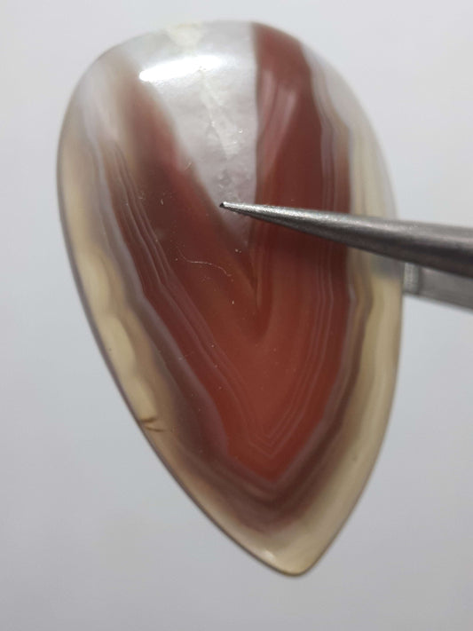 Natural brownish grey and deep orangy red Botswana Agate - 22.85 ct - Pear - crystal structure line in center