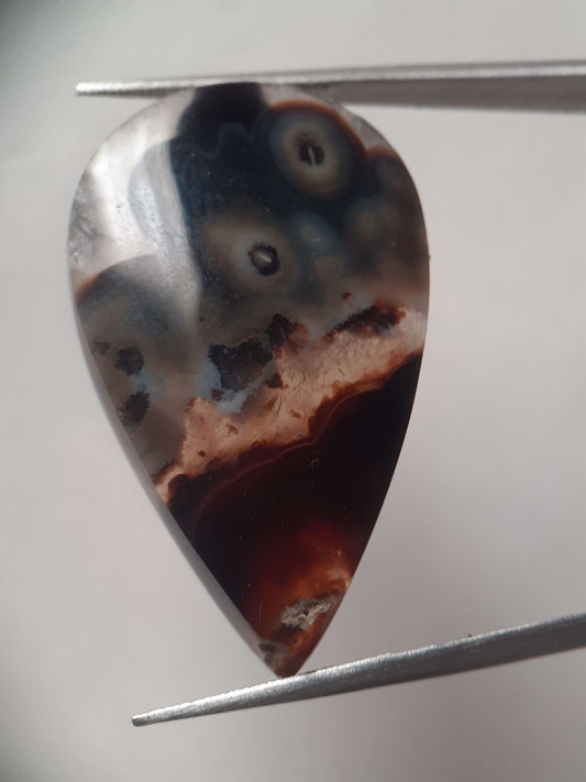 Natural grey and brown Agate - 24.420 ct - pear - rare sumatra palm root agate