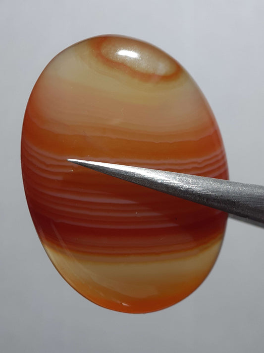 Natural orangy red Lake Superior Agate - 34.45 ct - Oval Cabochon - unheated - certified by NGB