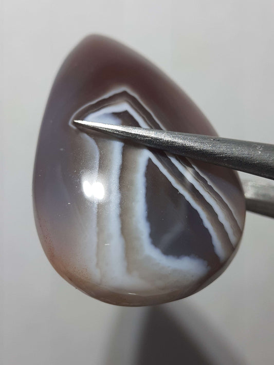 Natural purplish brown and white Botswana Agate - 21.47 ct - pear Cabochon - unique - certified by NGB