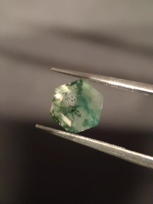 Natural Faceted Agate - Green Moss Agate - 1.990 ct - hexagon