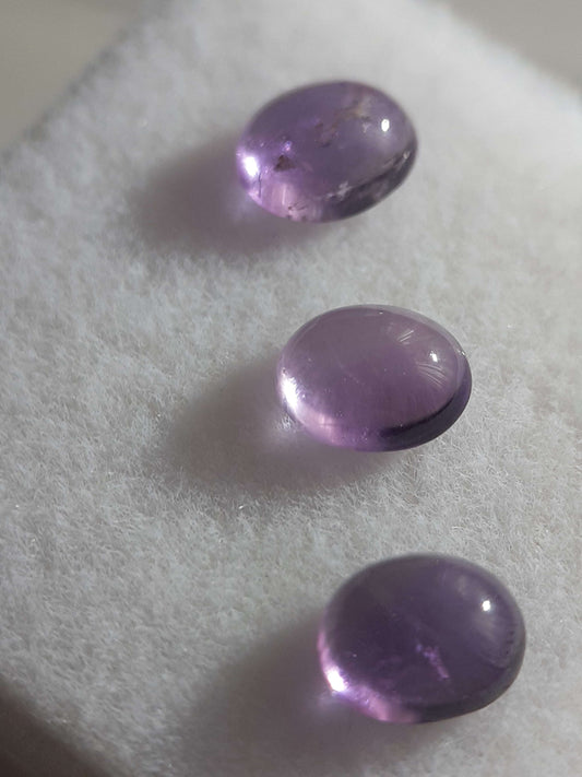 Natural light to medium purple Amethyst - set of 3 - 1.09 tcw - oval cabochon - approx 5 x 4 mm - unheated