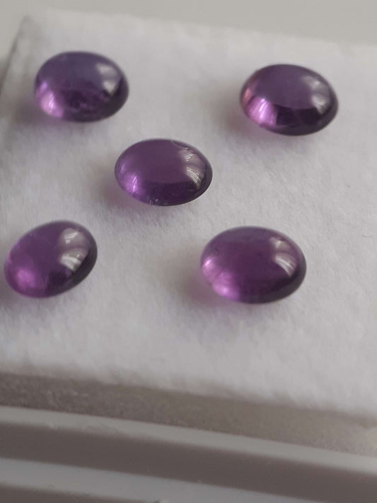 Natural medium purple Amethyst - set of 5 - 1.74 tcw - oval cabochon - approx 5 x 4 mm - unheated