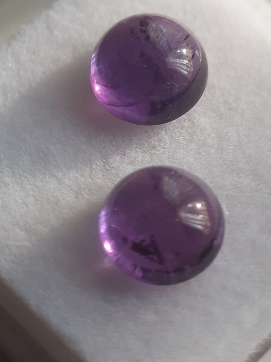 Natural purple Amethyst - matching pair - 2.89 tcw - round cabochon - approx 2.9 mm - unheated