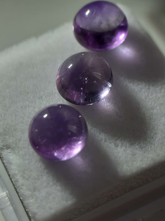 Natural purple Amethyst - set of 3 - 4.69 tcw - round cabochon - approx 7 x7 mm - unheated