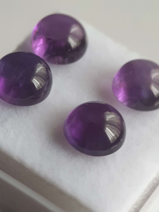 Natural purple Amethyst - set of 4 - 6.31 tcw - round cabochon - approx 7 x 7 mm - unheated