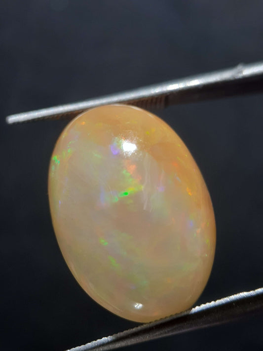 Natural White Opal - bicolor white orange with play of color - 7.944 ct - oval - unheated - unique