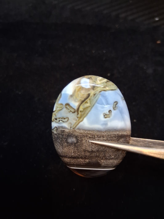 Natural Owyhee Blue Opal Cabochon - 20.658 ct - oval - scenic striped pattern