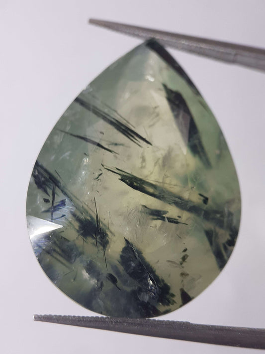 Natural yellowish green Prehnite - 26.86 ct - pear - unheated - certified by NGB