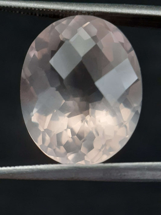 Natural light pink rose quartz - 8.868 ct - oval - checkered cut - certified natural