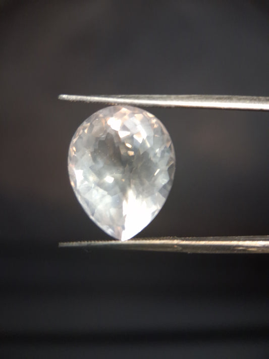 Natural light pink rose quartz - 9.67 ct - pear - checkered cut - brazil