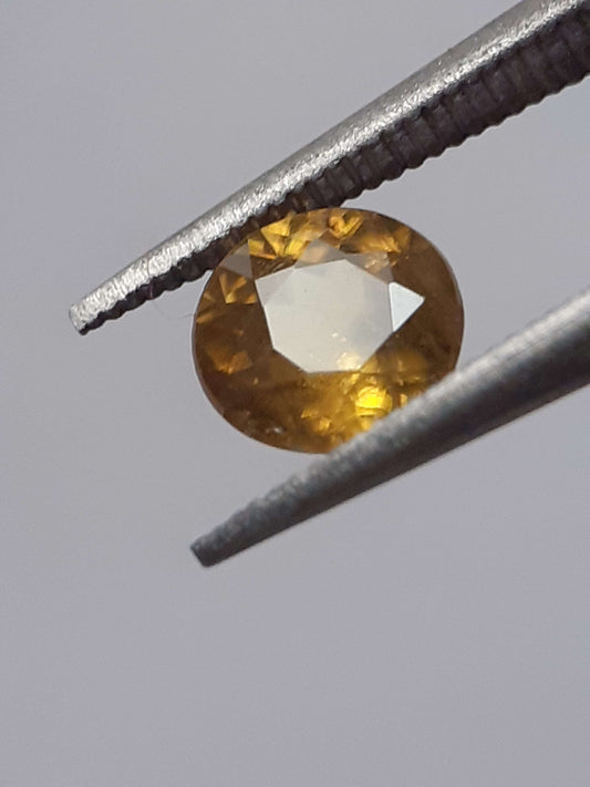 Natural brownish yellow shpene - 0.50 ct - round - unheated - sparkles A+ - certified by NGB