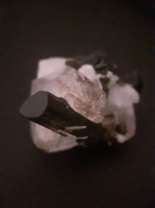 Small Crystal Cluster of Green Cap Tourmaline on base of quartz super cute and perfectly combined