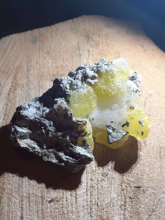 beautiful decorative cluster with yellow brucite, rough natural stone, 261 ct