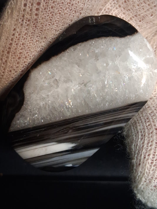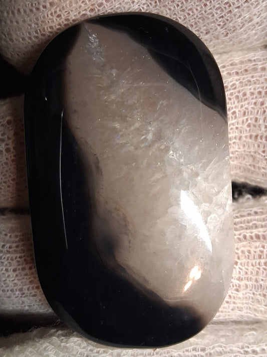 Natural Agate Palmstone - oval - 5x3 cm - Black Agate - nice crystalline balance