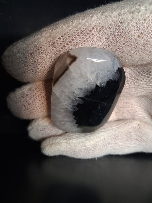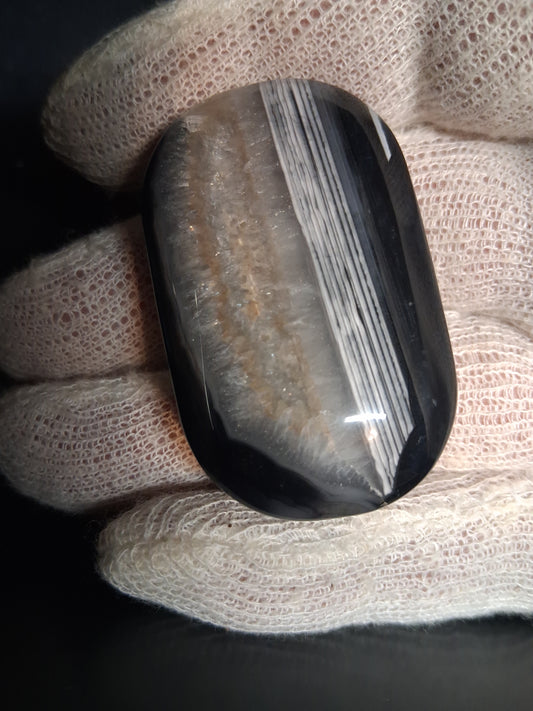 Natural Agate Palmstone - oval - 5.1x3.2 cm - Black Agate