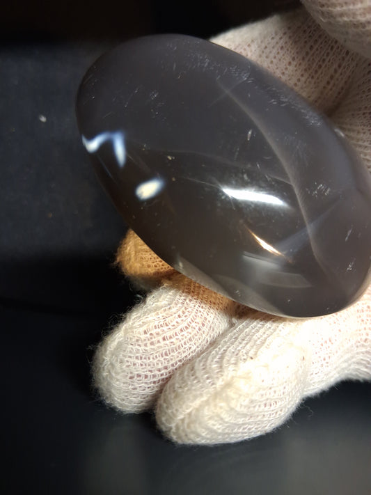 Natural Agate Palmstone - oval egg-shaped - 7.35x 5.83 cm - Grey Agate