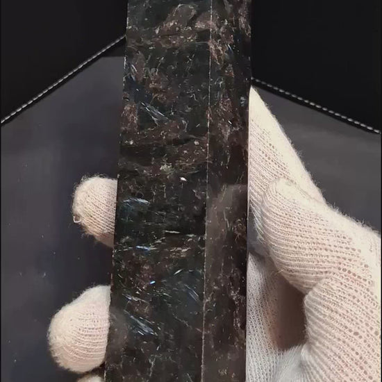 Astrophyllite crystal tower - 210 mm - gateway to the stars crystal - brown and black - silver and blue metallic glimmer