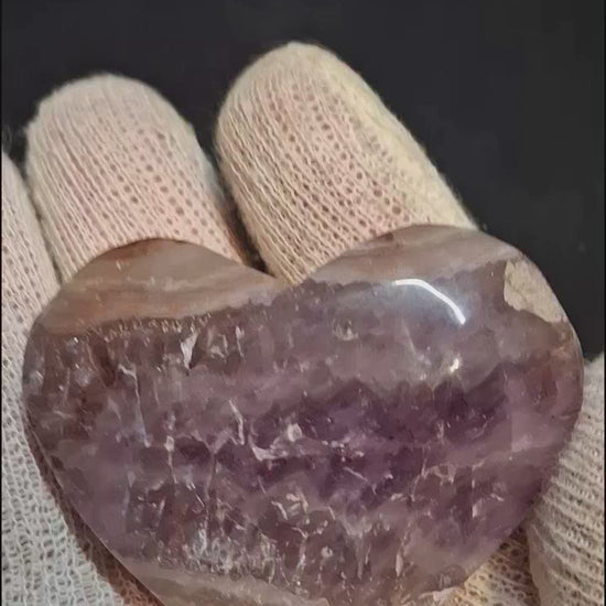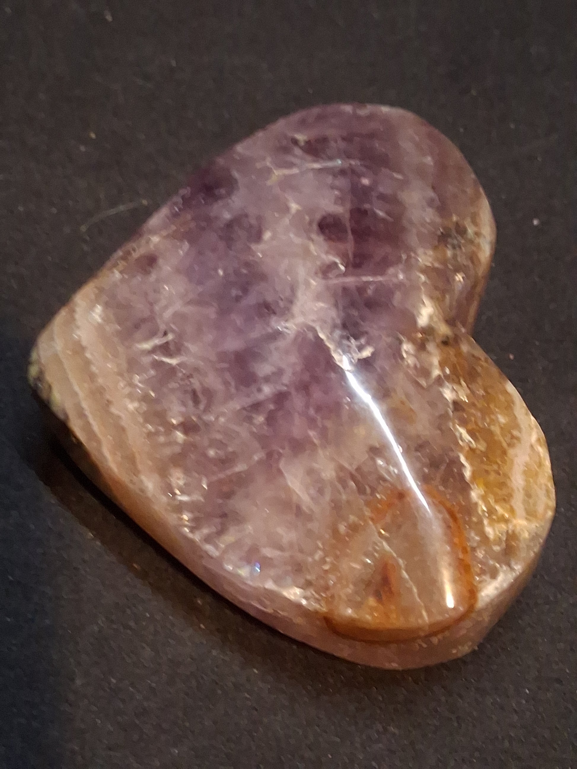 Natural Amethyst Palmstone - heart shaped - amethyst with lace agate - chipped