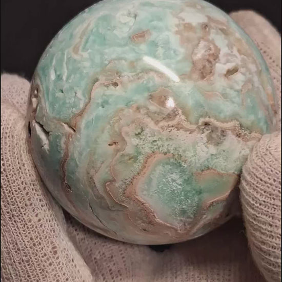 This natural Blue Aragonite sphere presents a captivating example of orthorhombic calcium carbonate crystallization. At 6.68 cm, the specimen displays the mineral's characteristic azure hues and intricate surface textures formed through geological processes. Aragonite exhibits polymorphic properties distinct from calcite, making it scientifically significant for mineral enthusiasts and researchers. The sphere's polished form enhances visibility of internal color gradations and structural patterns. Ideal for serious collectors, academic study, or decorative mineral displays seeking authentic geological specimens with documented provenance.