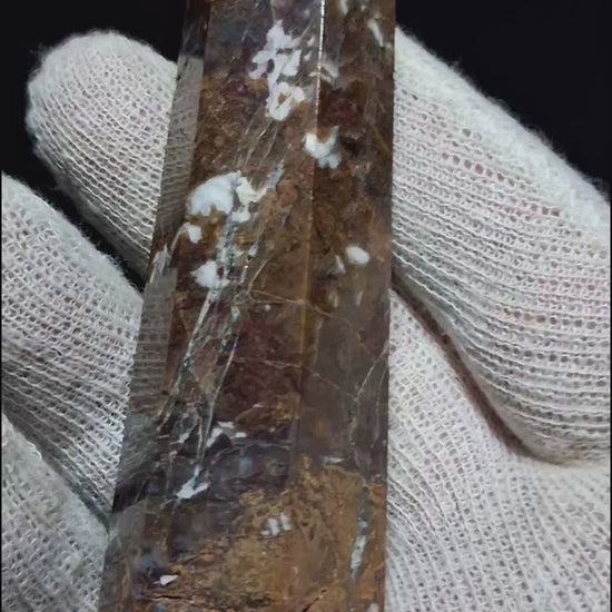This substantial brown agate tower reaches 10.25 cm, presenting a commanding presence in any space. Prized by mineral enthusiasts and practitioners alike, brown agate serves both decorative and spiritual purposes. Its warm, earthy tones and natural banding patterns make it visually compelling, while its grounding energy is sought by those exploring crystal work and meditation practices. An excellent choice for collectors valuing authenticity and versatility in their specimens.
