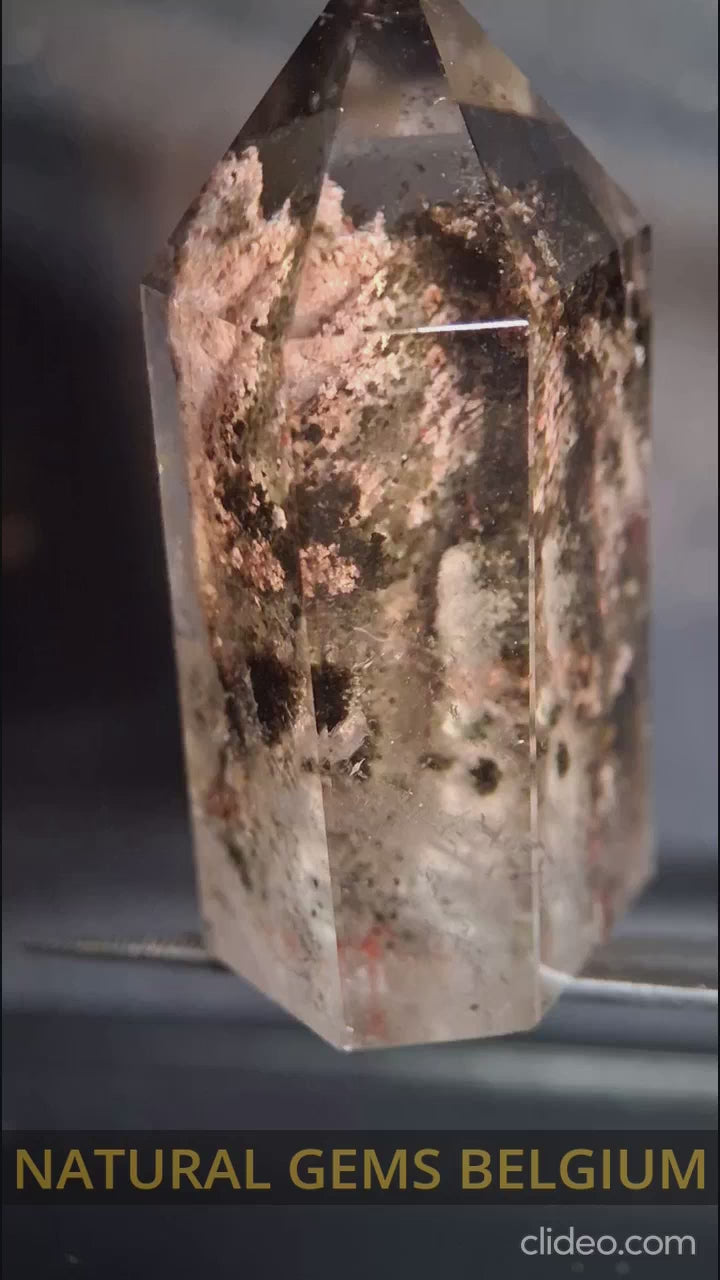 Crystal point of Phantom Quartz - multicolored scenic - hexagon - 3.8 cm