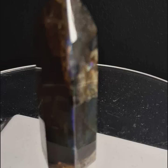 Scopri l'incantevole magia di questa torre esagonale di Labradorite naturale! Guarda come le sfumature dal marrone-verdastro e giallo al blu danzano con una straordinaria labradorescenza quando la luce la colpisce nel modo giusto—come catturare uno scorcio dell'Aurora Boreale nel palmo della tua mano. Con un'altezza di 4,3 cm, questa bellezza geometrica ha le dimensioni perfette per la tua collezione di cristalli, per il tuo spazio di meditazione o come pezzo da esposizione che attira l'attenzione. Ogni torre è naturalmente unica, rendendo la tua davvero irripetibile.