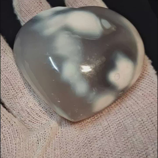 This heart-shaped palmstone showcases the striking contrast and dramatic patterns of genuine orca agate. Named for its bold black and white markings reminiscent of orca whales, this stone delivers visual impact with its distinctive banding and natural formations. The smooth, polished surface fits comfortably in your hand, making it an excellent choice for daily carry, meditation practice, or mineral collecting. Orca agate is traditionally associated with balance and protection, valued by practitioners for its grounding energy. Each piece is naturally unique, with its own pattern variations that reflect the stone's authentic geological origins. Perfect for those seeking a statement gemstone with both aesthetic sophistication and meaningful mineral properties.