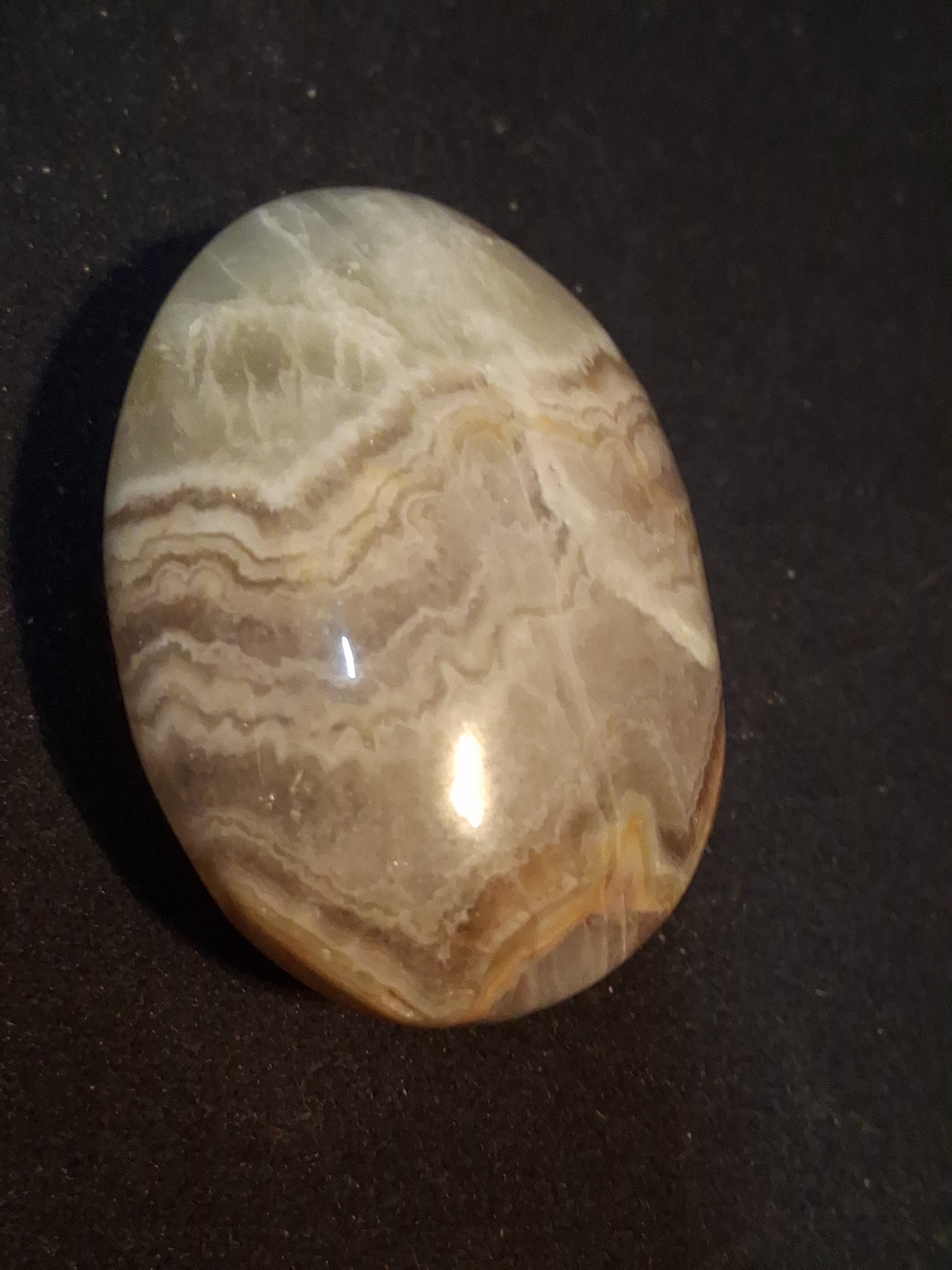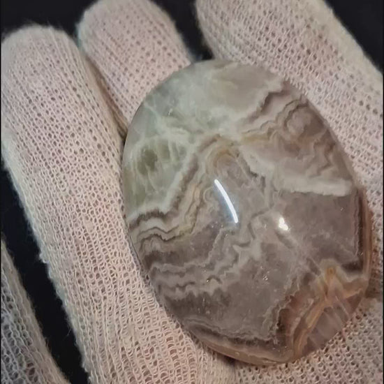 This oval palmstone measures 5x4 cm, offering an ergonomic fit for extended hand-holding during meditation or contemplative practice. Sourced from authentic crazy lace agate, it displays the signature intricate banding and warm, earthy palette that makes this variety highly sought after by collectors. The smooth, polished surface reveals the stone's natural patterns in full detail, with each piece presenting its own distinctive swirls and formations. Crazy lace agate is traditionally prized for its stabilizing and uplifting properties, making it a favored choice for those exploring crystal work. The compact yet substantial size makes this palmstone ideal for pocket carrying, altar displays, or as a tactile focal point during mindfulness sessions. A genuine mineral specimen that combines natural elegance with practical usability.