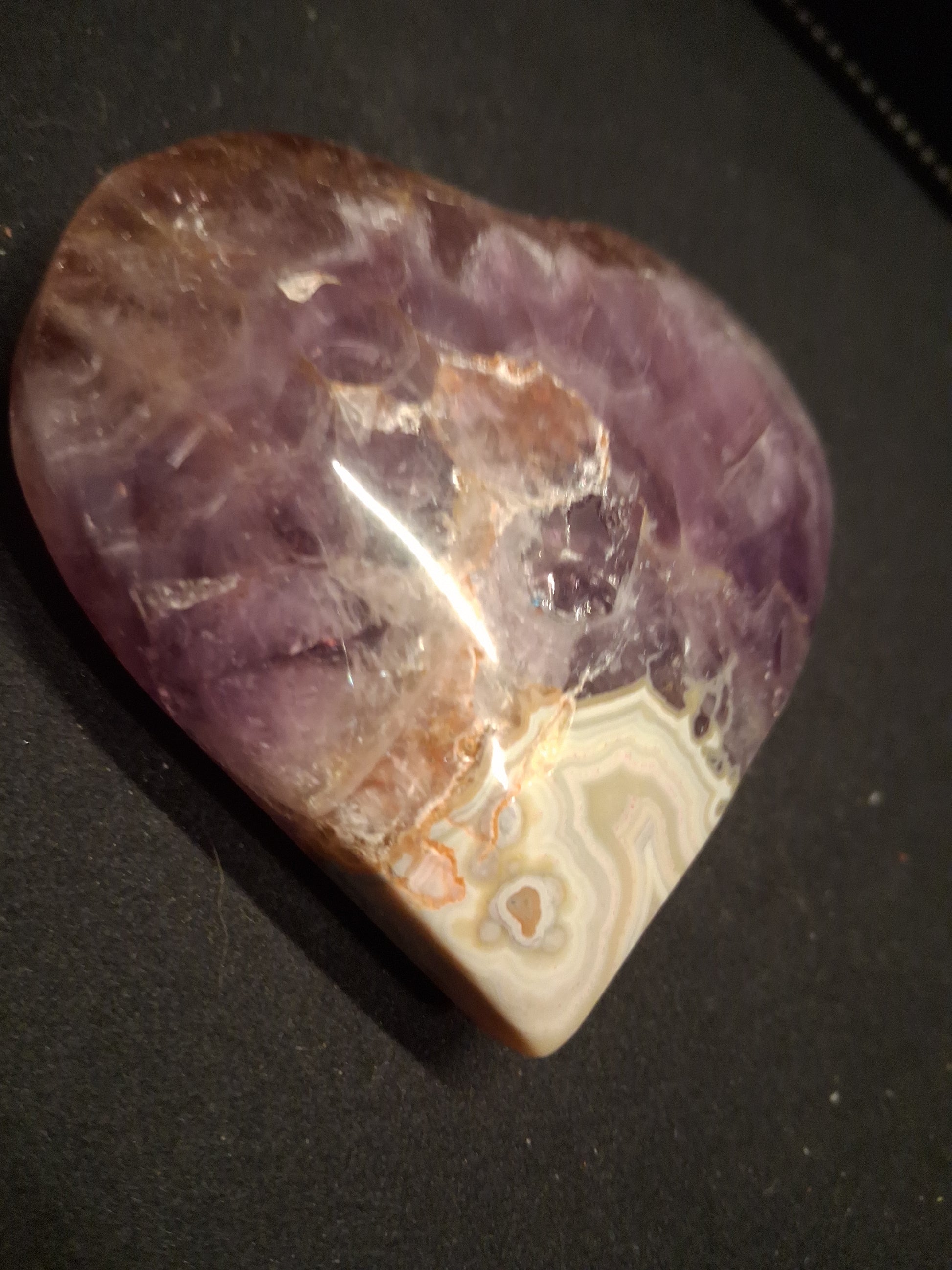 Natural Amethyst Palmstone - heart shaped - with mexican agate point - Mexico