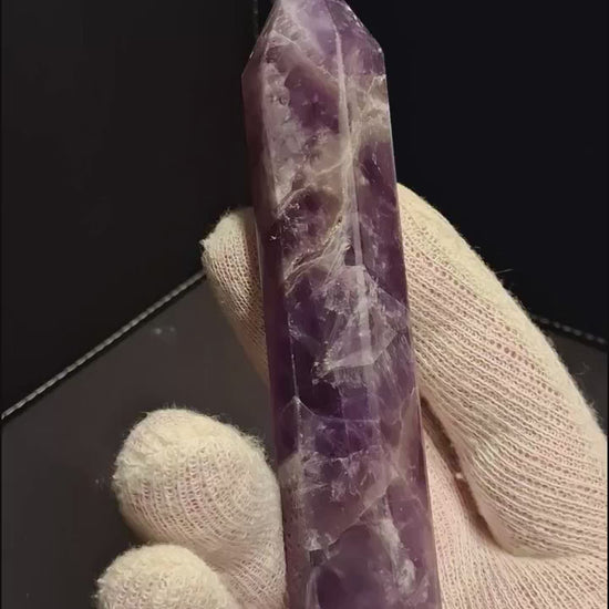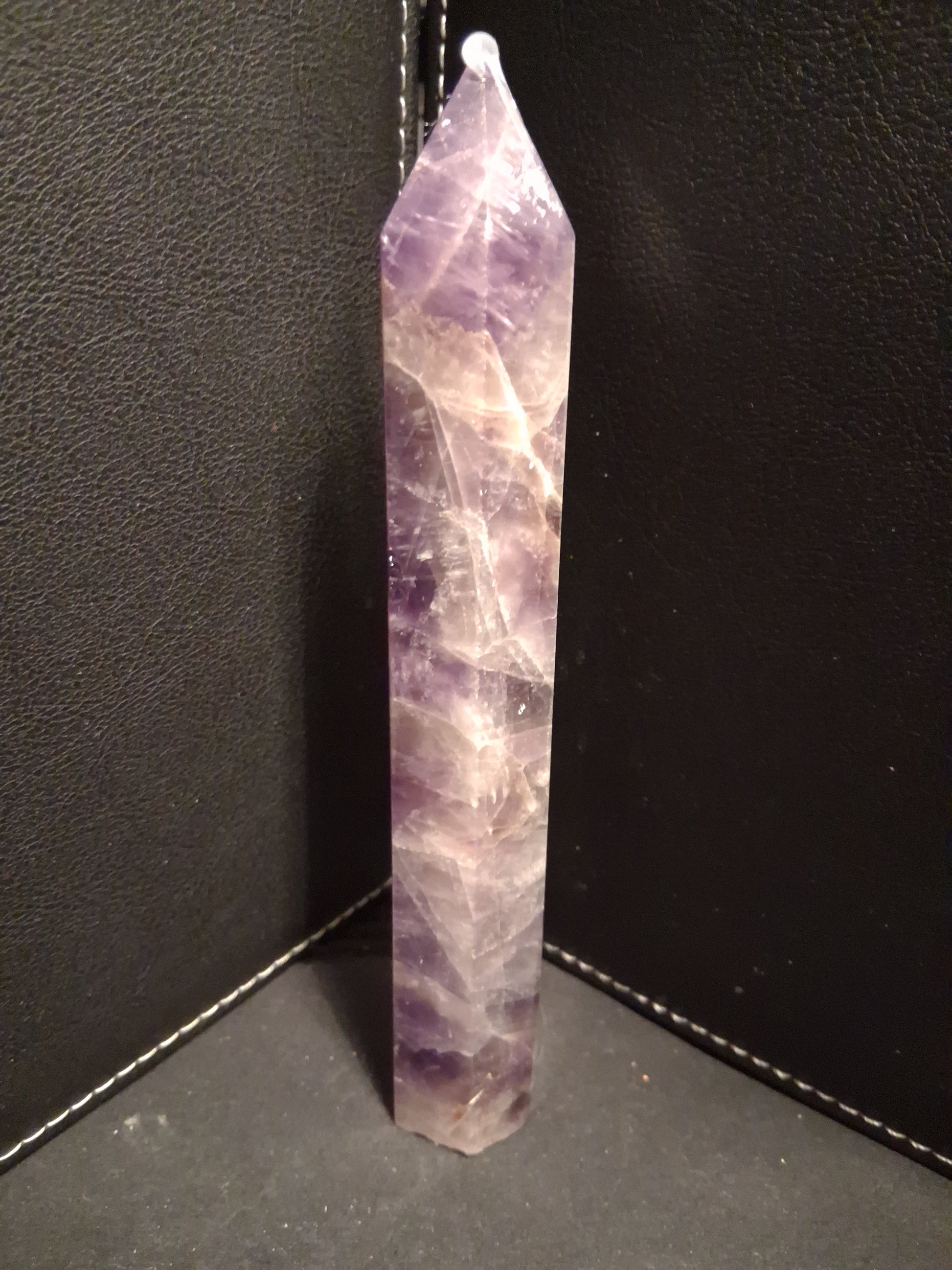 This refined amethyst tower captures the gentle lavender tones of dream amethyst in a distinctive hexagonal form. Standing 15 cm with a 2.2 cm base, !!! its naturally irregular foundation however sets the tower out of balance !!!. Ideal for those seeking a genuine, specimen for meditation altars, crystal collections, or as a contemplative home accent that celebrates the stone's raw natural beauty.