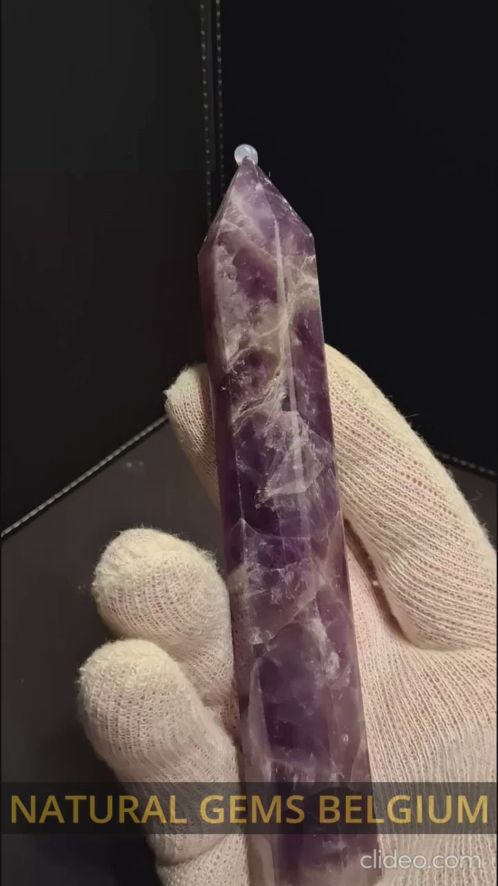 Natural Amethyst tower - dream amethyst - 15 x 2.2 cm - hexagon tower - inequal base