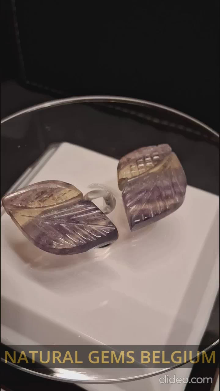 Natural Fluorite - bicolor - pair of leaves - 54 ct - handcarved