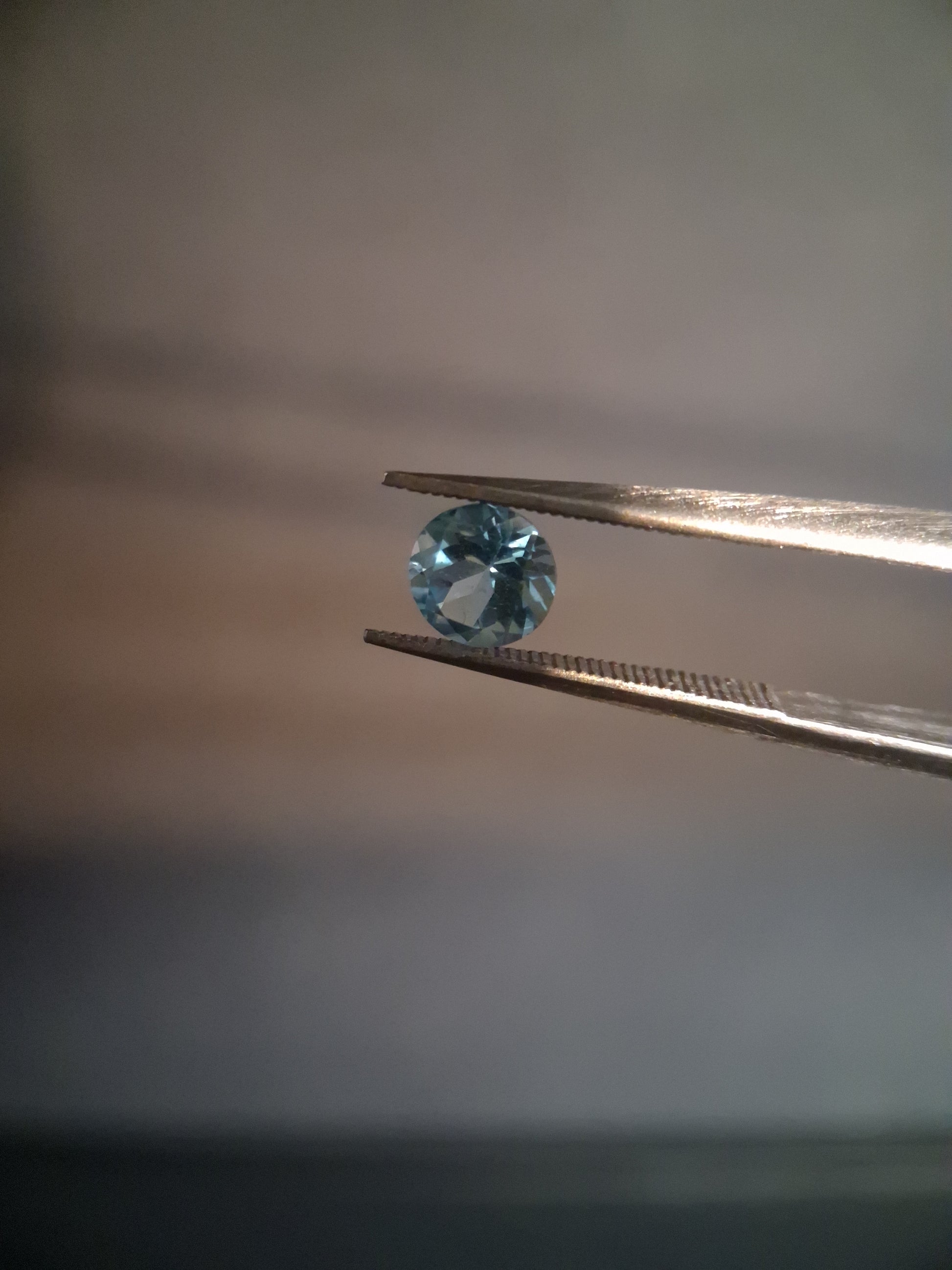 Natural Swiss Blue Topaz - 0.589 ct - round - irradiated - high quality - certified natural.