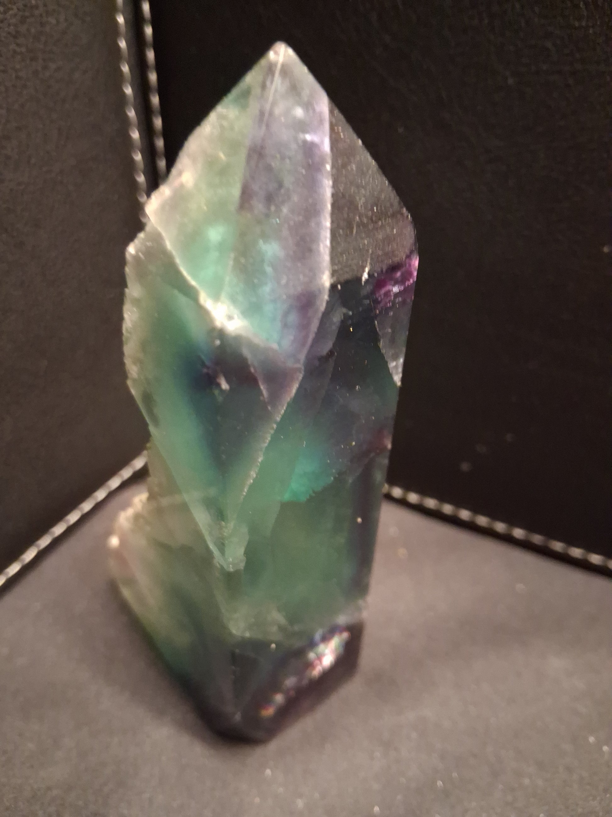 Bicolor fluorite Tower - 10 cm high - Fluorite crystal tower Druzy Pockets - green with purple accents