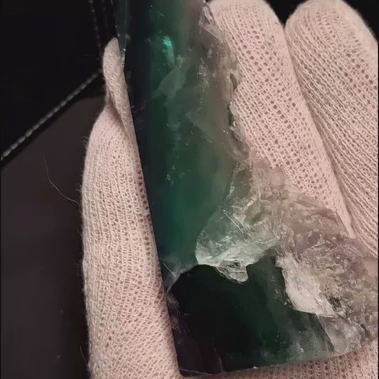This striking bicolor fluorite tower showcases nature's geometric precision with vibrant green hues accented by rich purple tones. Standing 10 cm tall, this specimen features delicate druzy pockets that catch the light beautifully, adding depth and visual interest to any collection. Fluorite is prized by mineral enthusiasts for its exceptional clarity and color variation. Each tower is a unique natural formation, making it an ideal centerpiece for display or a meaningful addition to your crystal collection. Perfect for collectors, decorators, and those drawn to the natural beauty of raw minerals.