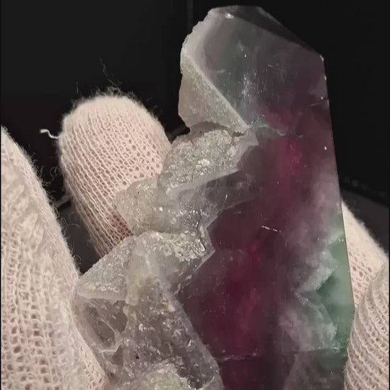Discover the captivating beauty of this bicolor fluorite tower, standing 8.9 cm tall with striking purple and green hues. This natural crystal specimen features delicate druzy pockets that sparkle brilliantly in daylight, creating an enchanting display. Fluorite is prized by collectors for its exceptional clarity and vibrant color banding, making each tower a unique geological treasure. Perfect for mineral enthusiasts, crystal collectors, or as a sophisticated decorative accent that brings natural elegance to any space.