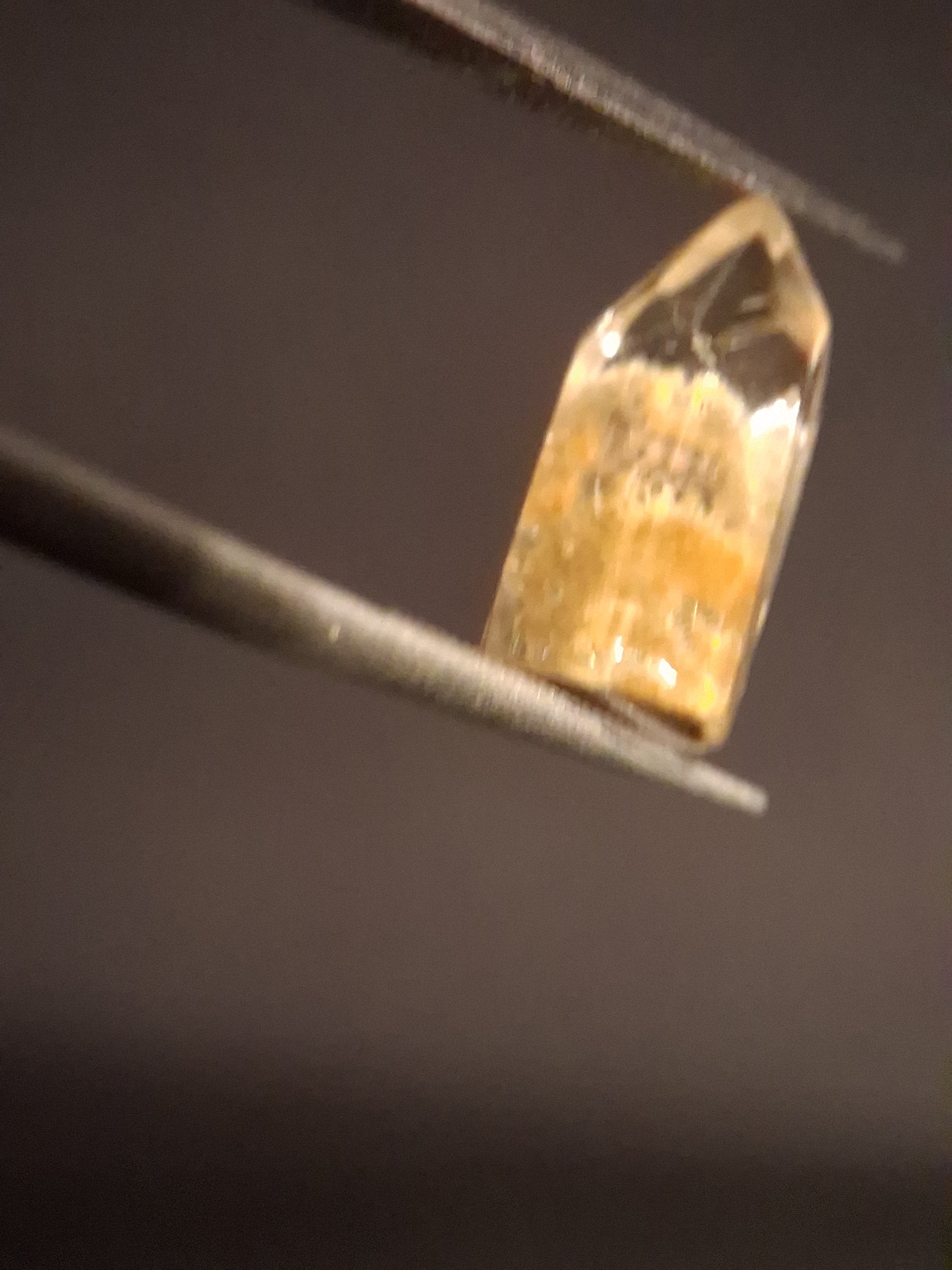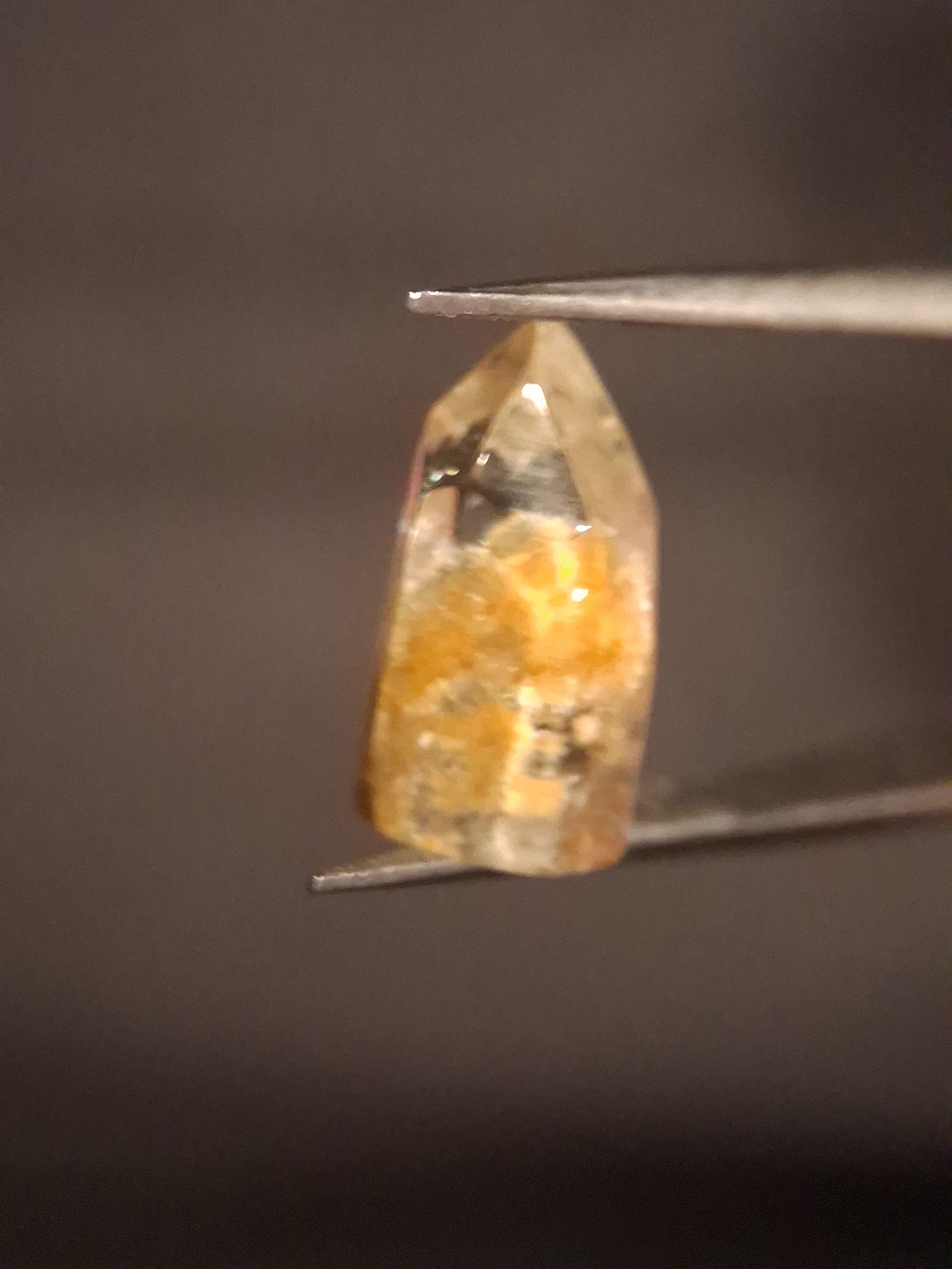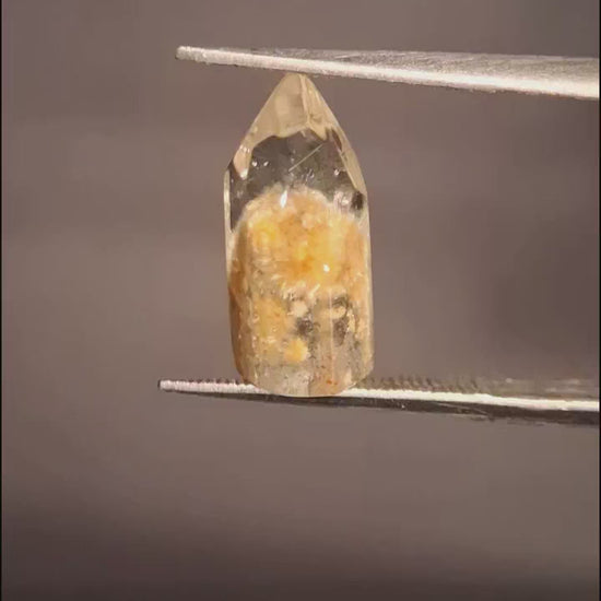 Crystal point of Phantom Quartz - Yellow to orange inclusions - collectors item