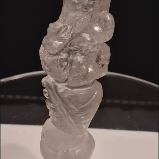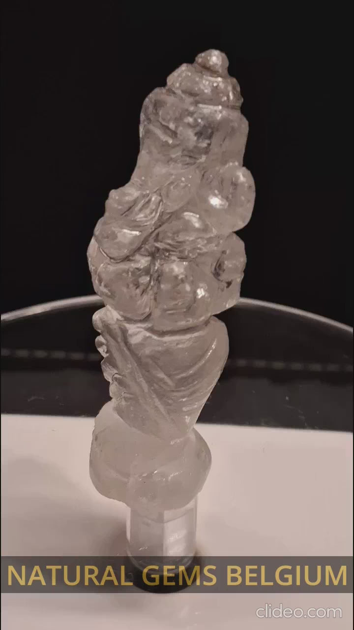 Handcarved Ganesh in Clear Quartz - decoration or meditation - 5.1 cm