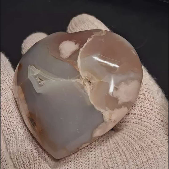 Discover the refined elegance of this compact heart-shaped palmstone, crafted from cherry blossom agate and measuring 6x6 cm. This smaller format offers portability without compromising the stone's distinctive rose and cream striations that evoke delicate floral patterns. Cherry blossom agate is valued in crystal practice for its gentle, nurturing properties and connection to emotional harmony. The heart shape amplifies its symbolic resonance with compassion and inner peace. Its smooth, polished surface invites tactile meditation, while its natural variations ensure each piece is genuinely one-of-a-kind. An ideal gift or personal talisman for those drawn to subtle, natural beauty.