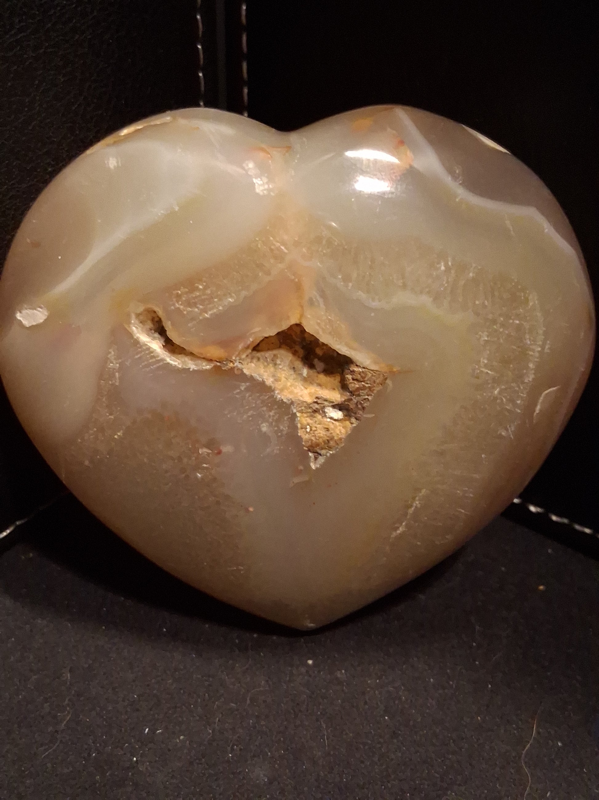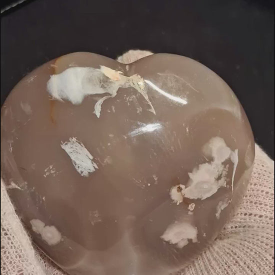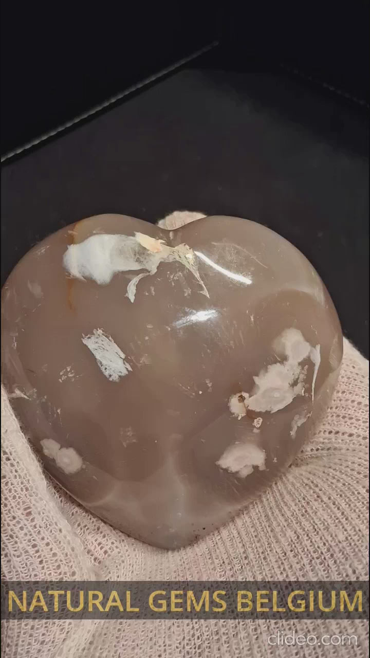 Natural Agate Palmstone - heart - 7x7.5 cm - cherry blossom agate - druzy pocket