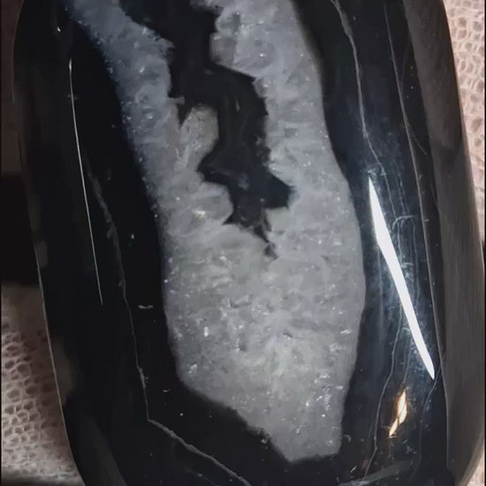 Experience the calming presence of this beautifully colored Black Agate palmstone, sized at 5x3 cm for convenient everyday use. Its smooth, polished oval form fits comfortably in your hand, inviting moments of mindfulness and reflection. This natural stone is celebrated for its stabilizing and protective energy, helping you feel grounded and secure throughout your day. The rich, vibrant coloring showcases nature's artistry while making it an attractive addition to any space. Perfect for meditation, stress relief, or simply carrying as a personal talisman, this authentic agate piece connects you to the earth's timeless wisdom and strength.