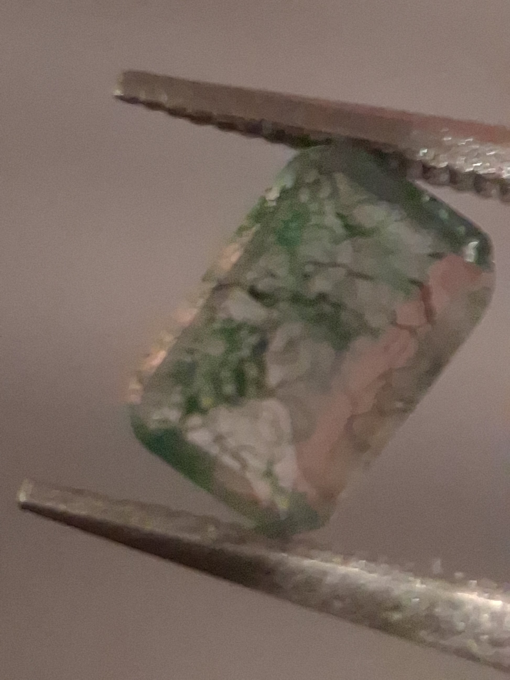 No indications of heating - very high quality : clear background and clear dendrite inclusions rendering moss pattern
