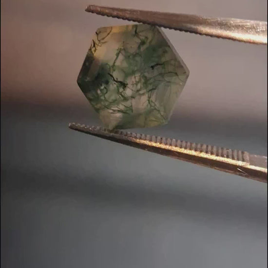 Natural Faceted Agate - Green Moss Agate - 2.035 ct - hexagon