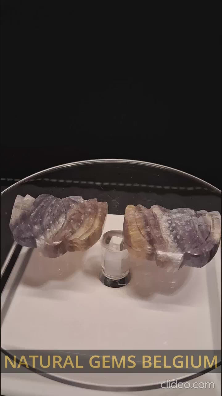 This stunning hand-carved natural fluorite gemstone features a captivating rainbow flower design carving, weighing 88 carats. The stone displays beautiful rainbow hues with vibrant orangy-yellow tones that catch the light brilliantly. Its generous size makes it ideal for creating distinctive jewelry pieces such as pendants or statement rings. The intricate hand-carved flower pattern showcases exceptional craftsmanship and artistry. With a Mohs hardness of 4, this fluorite is best suited for special occasion wear and protected display pieces. Perfect for collectors and jewelry makers seeking a unique, colorful natural gemstone with artistic detail and visual impact.