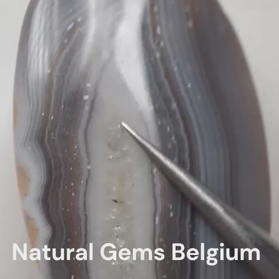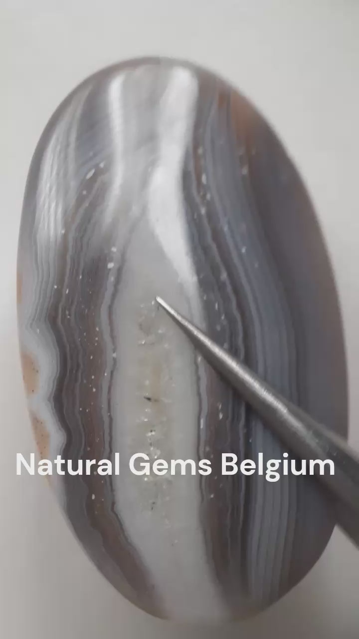 Find the video of this grey and brown botswana agate here